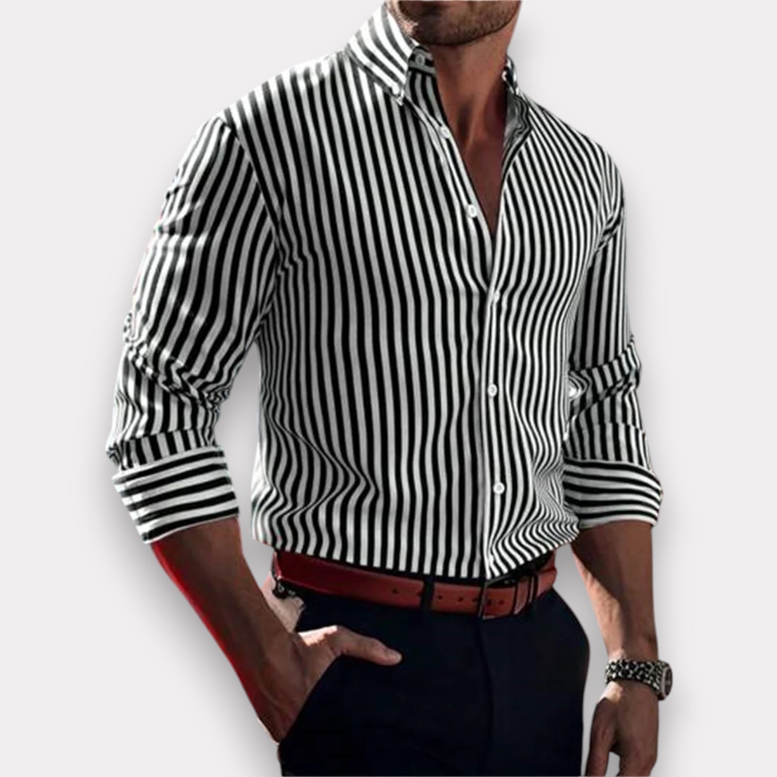 Vertical stripes and a structured collar define this lightweight shirt, ideal for both work and casual outings. Crafted from a crisp, breathable fabric, its tailored silhouette ensures all-day comfort and sharp style.